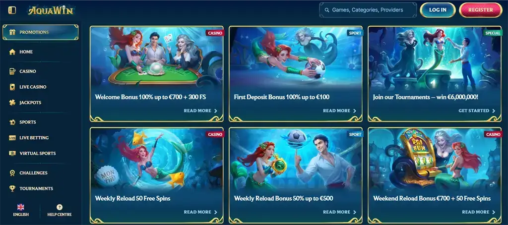 AquaWin Casino non è semplicemente un altro sito di gioco; è un’avventura nelle profondità marine per il giocatore moderno ed esigente. Unisce il brivido casual delle slot, la strategia delle scommesse sportive e il contatto umano dei giochi dal vivo in un unico universo oceanico coerentemente progettato. I bonus di benvenuto, la fedeltà a livelli, la libreria imponente e il supporto alle criptovalute offrono tanto impatto immediato quanto valore a lungo termine. Che tu sia un esploratore cauto, un amante dell’adrenalina o un scommettitore strategico, AquaWin ti dà gli strumenti, l’estetica e la spinta per immergerti e risalire con il bottino.